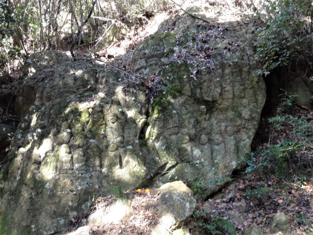 奈良県高取町の土佐街道の街並みを散策してから、高取城跡を目指して出発した。山道をどんどん登って途中に出てくるのは、まず「猿石」。そこからもう山城の一部である。少し行って、見晴らしの良い「国見櫓」から遥か遠くの大阪のビルまで見た。さらに登って行った。道に沿って積まれた立派な石垣を見ると往時の荘厳な山城群が目に浮かんできた。その広さに圧倒された。次に、西国霊場第六番・眼病封じの寺・お里沢市の霊蹟「壷阪寺」に向かった。大きなお寺で、天竺渡来大石像は圧巻であった。好天に恵まれ快適なハイキングであった。
