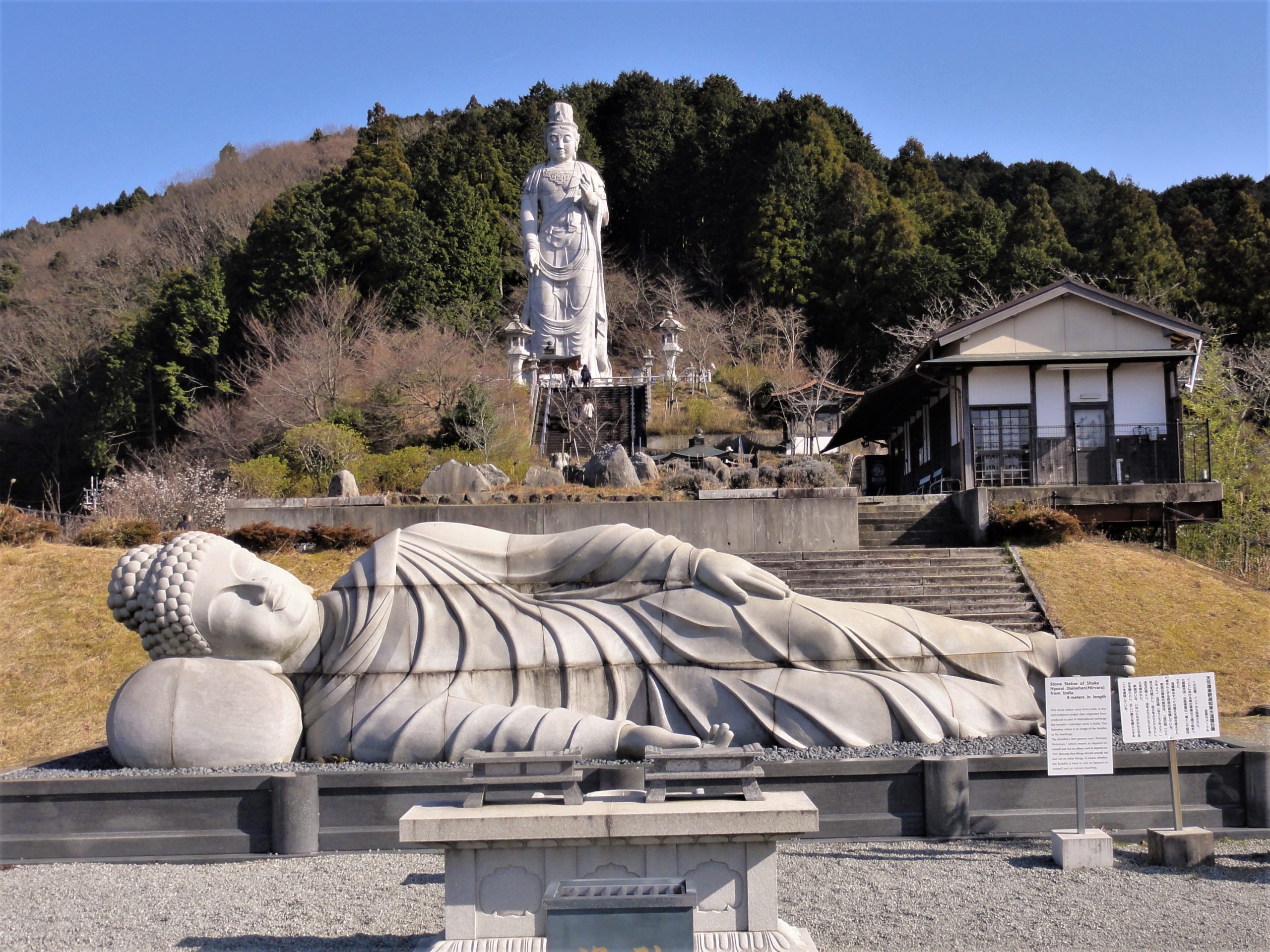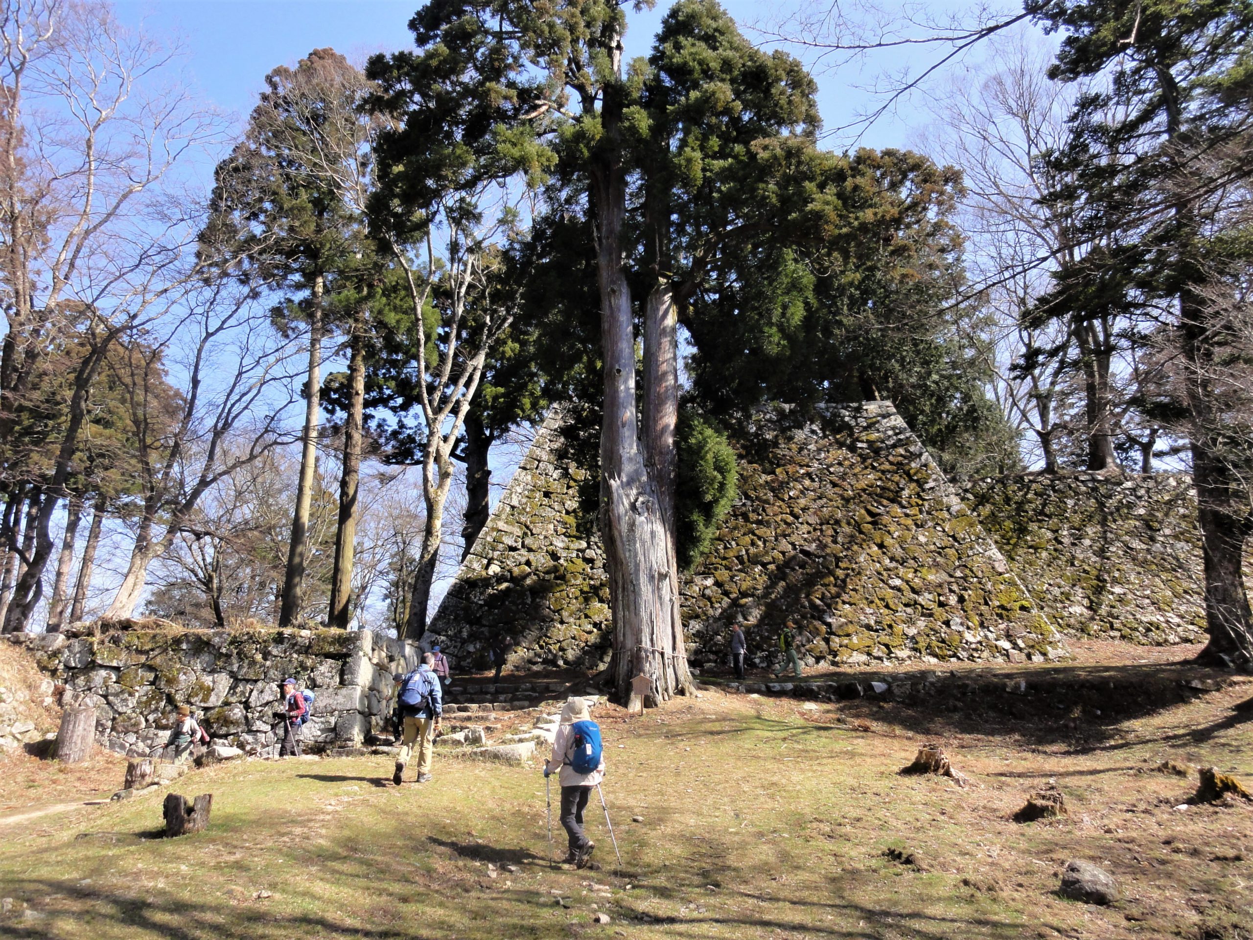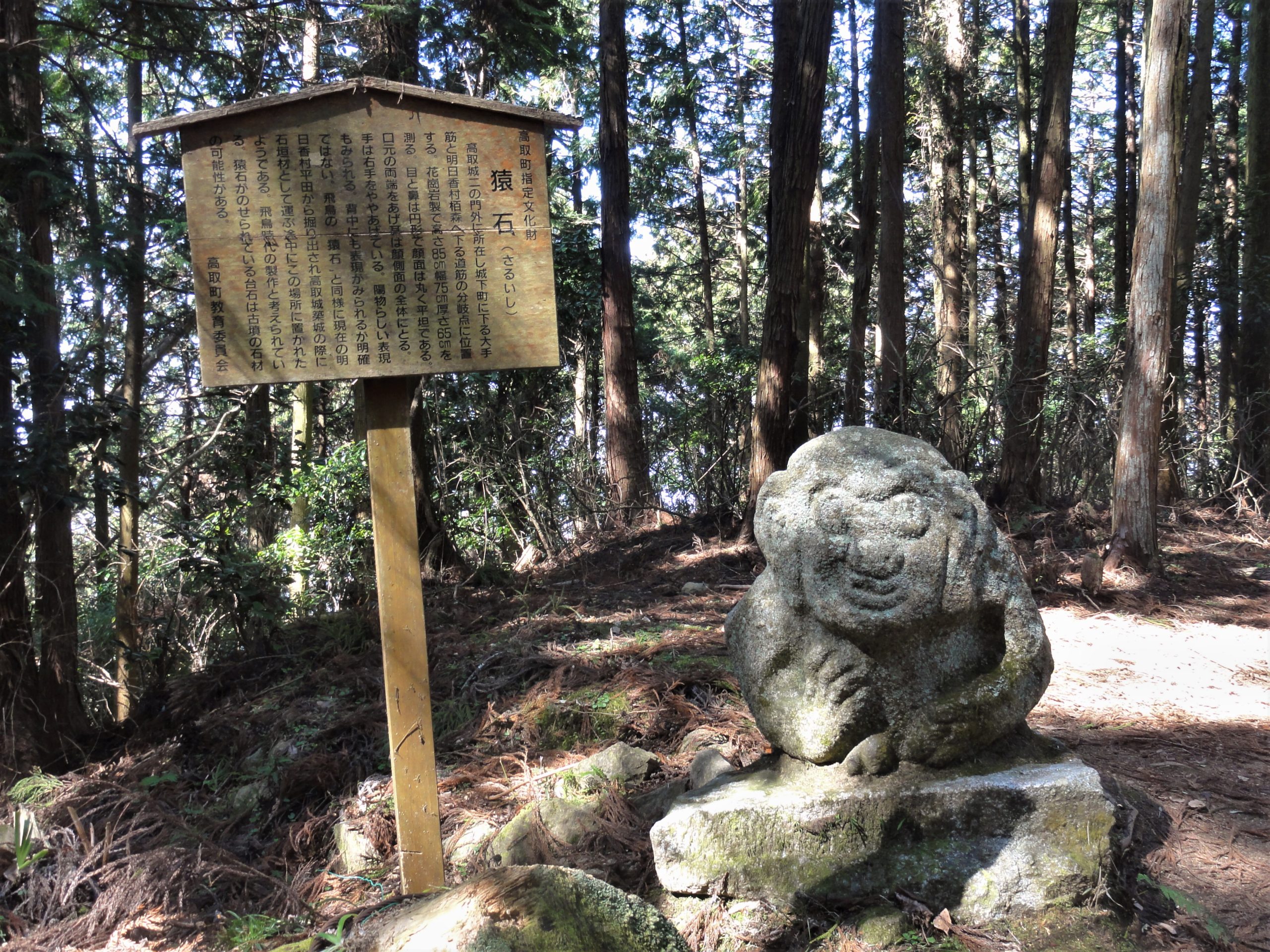 奈良県高取町の土佐街道の街並みを散策してから、高取城跡を目指して出発した。山道をどんどん登って途中に出てくるのは、まず「猿石」。そこからもう山城の一部である。少し行って、見晴らしの良い「国見櫓」から遥か遠くの大阪のビルまで見た。さらに登って行った。道に沿って積まれた立派な石垣を見ると往時の荘厳な山城群が目に浮かんできた。その広さに圧倒された。次に、西国霊場第六番・眼病封じの寺・お里沢市の霊蹟「壷阪寺」に向かった。大きなお寺で、天竺渡来大石像は圧巻であった。好天に恵まれ快適なハイキングであった。