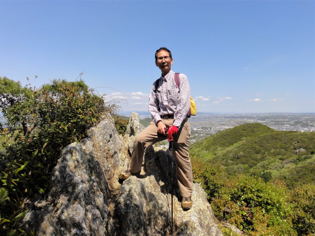4月23日(水)妻と一緒に「田原アルプス」のハイキングに出かけた。滝頭公園に車を止めて、少し離れた衣笠山の登山口からよく整備された登山道を登った。落葉広葉樹林の中の道を進んで衣笠山の山頂に着くと、展望台から素晴らしい眺めを楽しむことができた。途中、「亀首岩」などの奇岩巡りをしたり、「恐竜の背」に乗ったりして、滝頭山を目指した。下山は「ミツバツツジの回廊」(花はもう散っていた)を下って、「滝頭不動」に着いた。そして車の止めてある滝頭公園に帰ってきた。途中見どころが点在するコースで、好天に恵まれて楽しいハイキングだった。