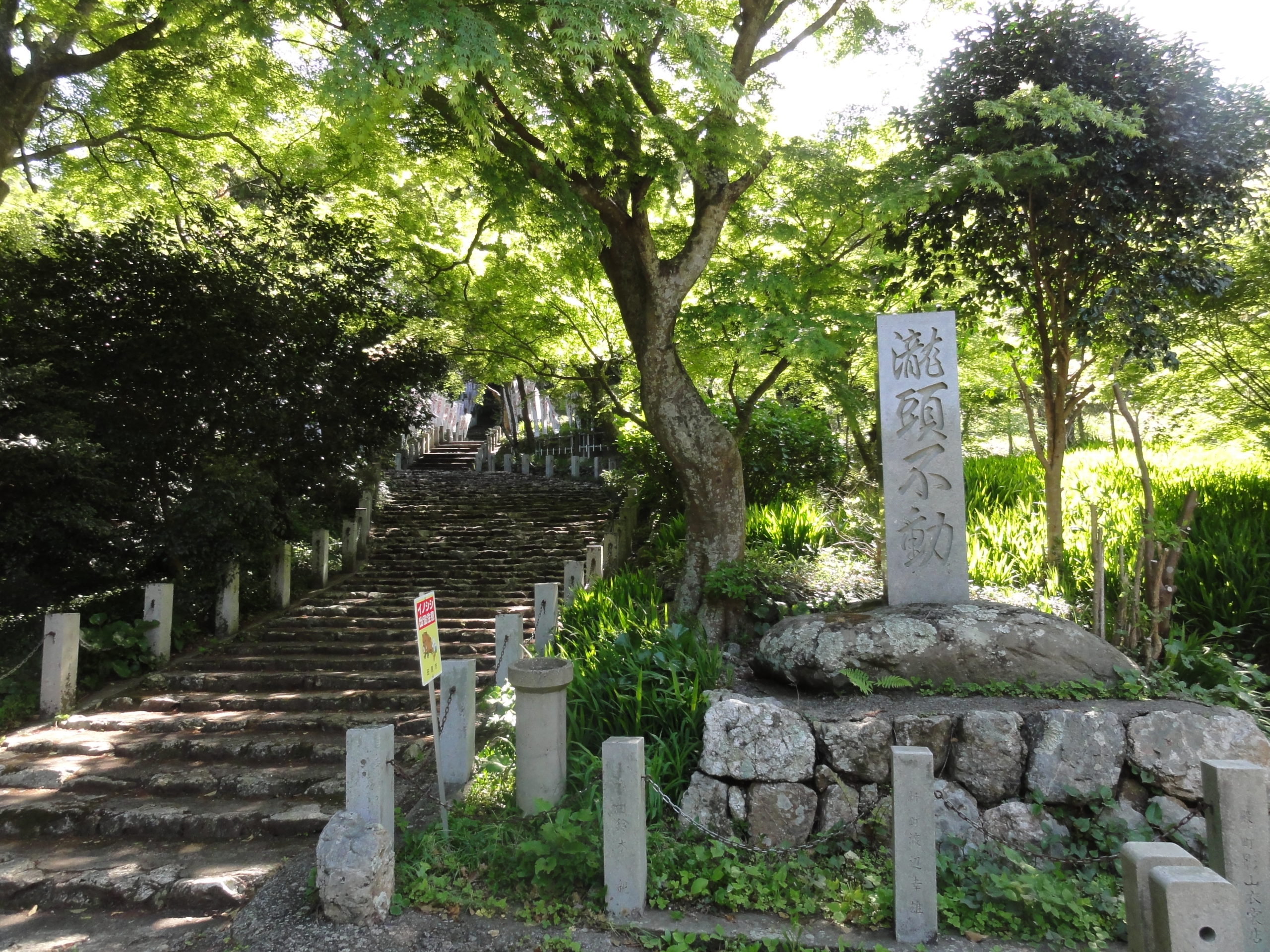 4月23日(水)妻と一緒に「田原アルプス」のハイキングに出かけた。滝頭公園に車を止めて、少し離れた衣笠山の登山口からよく整備された登山道を登った。落葉広葉樹林の中の道を進んで衣笠山の山頂に着くと、展望台から素晴らしい眺めを楽しむことができた。途中、「亀首岩」などの奇岩巡りをしたり、「恐竜の背」に乗ったりして、滝頭山を目指した。下山は「ミツバツツジの回廊」(花はもう散っていた)を下って、「滝頭不動」に着いた。そして車の止めてある滝頭公園に帰ってきた。途中見どころが点在するコースで、好天に恵まれて楽しいハイキングだった。