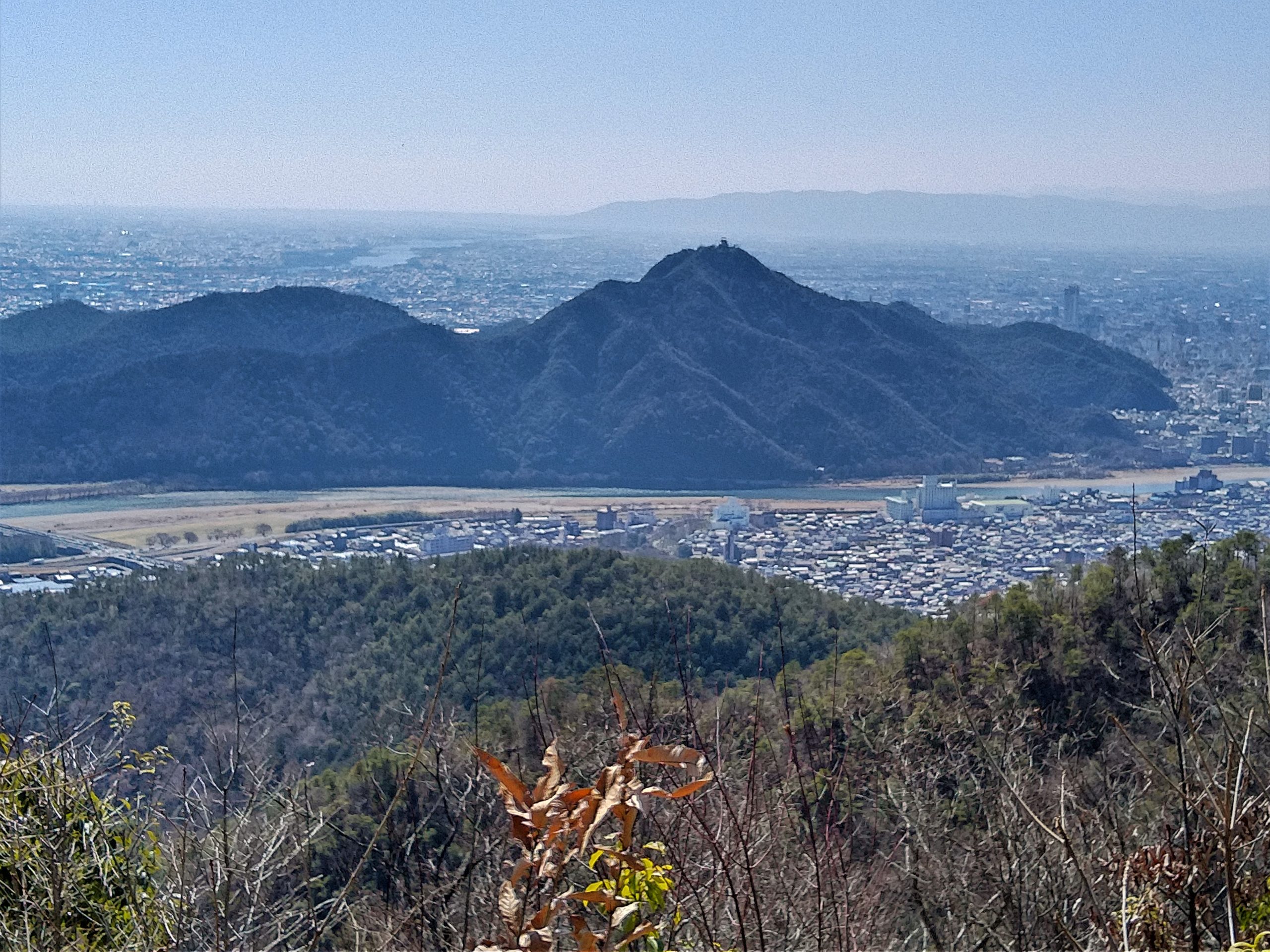 3月15日(月)岐阜市の最高峰「百々ヶ峰」(418m)に妻と登った。「ながら川ふれあいの森四季の森センター」の駐車場に車を止めて、林道のゲートから登り始めた。整備された道をのんびりと50分ほど歩くと三田洞展望台に着いた。そこからさらに稜線の登山道を30分ほど登って、山頂の百々ヶ展望台に着いた。快晴で長良川を挟んで向かい側の金華山の岐阜城がはっきりと見え、市街が一望できた。遠く名古屋駅周辺のビル群もかすんで見えた。春を満喫した山行であった。