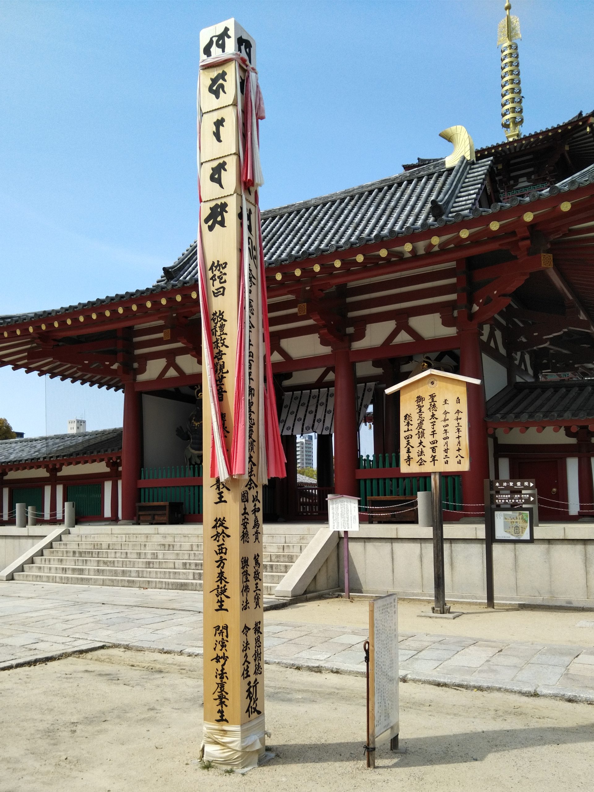 4月7日(木)妻と大阪市内を散策した。まず四天王寺を訪れた。次に天王寺公園を通ってあべのハルカスに行き、そこでうどんを食べた。それから、道頓堀に行って記念写真を撮り、さらに歩いてディープな街、新世界でたこ焼きを食べた。