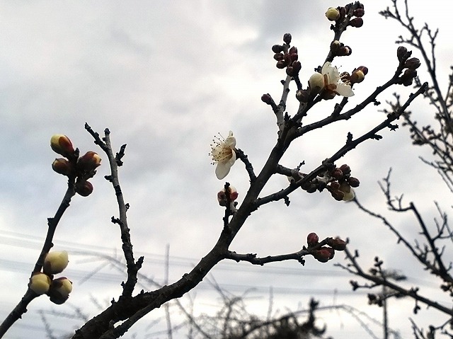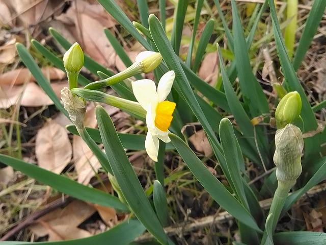 14日(水)午後1:30頃から、最高気温が10℃を超えない寒さで北風が強く吹いていたが、パークロードの散歩に出かけた。前回散歩してから2週間ほど経ち、まだ多くはないがロウバイが咲き始めていた。足元では水仙の花が少しずつ咲き始めていた。梅の木はつぼみが大きくなってきていたが、まだ咲いていなかった。しかし、一本だけ一分咲きになっているのがあった。これからあちこちで少しずつ咲いていくだろう。